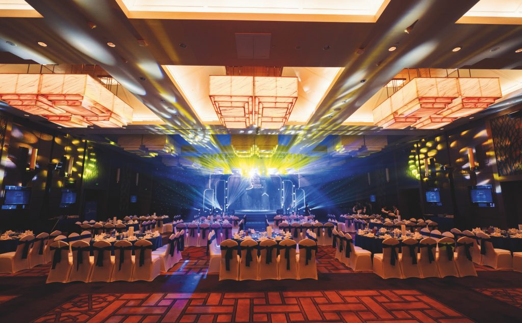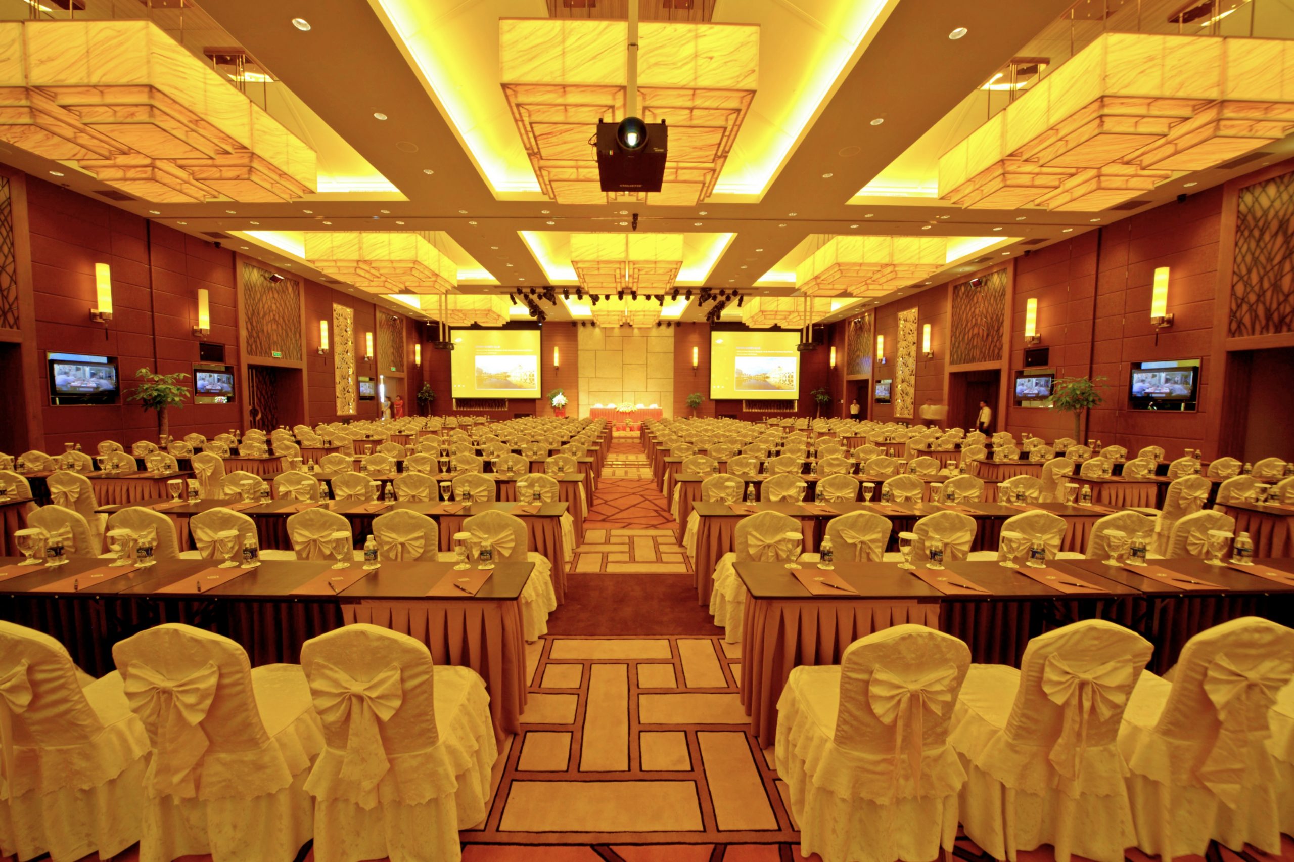 Khi bước qua những cánh cửa lớn dẫn vào Grand Ballroom tại Crowne Plaza Danang, quý khách sẽ ngay lập tức bị ấn tượng bởi không gian tráng lệ với trần nhà cao 6 mét và những bức tường màu nâu sang trọng. Với diện tích lên đến 600 mét vuông, Grand Ballroom được thiết kế theo kiểu nhà hát, có sức chứa tối đa 990 khách. Hình dạng vuông vức và cách bố trí thông minh giúp tất cả mọi người có tầm nhìn hoàn hảo hướng về sân khấu trung tâm. Đây là địa điểm lý tưởng cho các buổi hội thảo, thuyết trình, và dạ tiệc sang trọng, Grand Ballroom nằm ngay tại tầng chính của khách sạn, dễ dàng kết nối với khu vực sảnh chờ rộng rãi và tiện nghi.